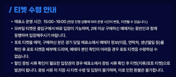 예매 후에는 티켓을 출력하거나 모바일 티켓을 준비하여 경기 당일에 지참해야 합니다. 예매 시 주의사항을 숙지하고, 미리 준비하여 불꽃야구 부산 사직 직관 경기를 놓치지 않도록 하세요.