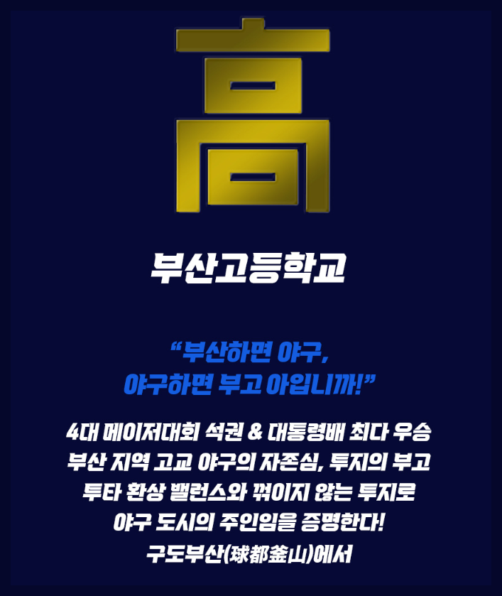 부산고등학교는 고교야구 4대 메이저대회에서 14번이나 우승한 명문팀으로, 그들의 뛰어난 기량과 팀워크는 언제나 팬들을 매료시킵니다. 이번 경기는 부산고등학교의 전통과 역사를 직접 느낄 수 있는 특별한 기회로, 팬들에게 큰 의미가 있습니다.
