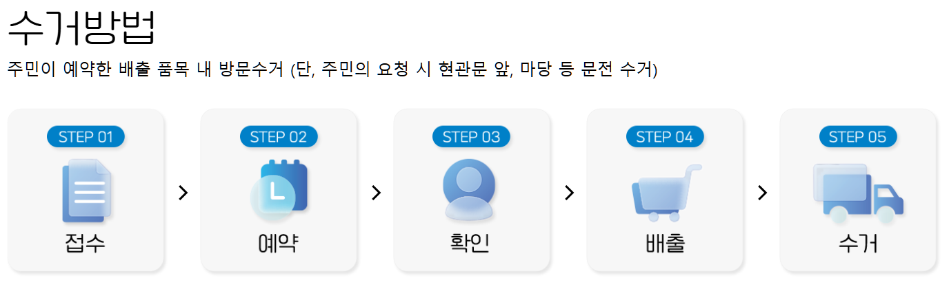 정부와 지자체가 협력해 운영하는 제도로, 신청만 하면 기사님이 집으로 직접 방문해 가져가 주기 때문에 편리하고, 환경 보호 효과까지 누릴 수 있습니다.